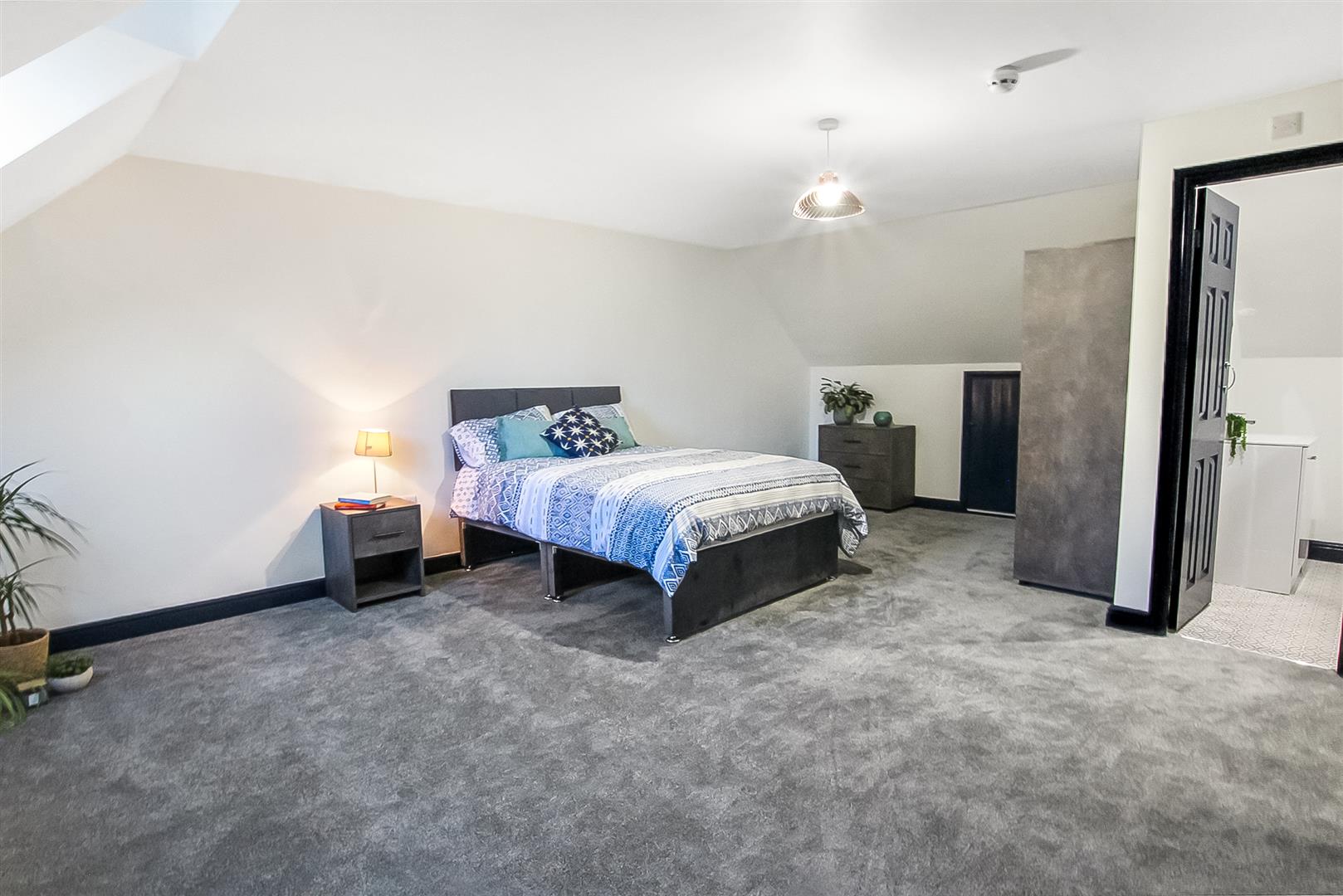 The shared open plan living, dining and kitchen with breakfast bar is the perfect space for those who love to cook or bake with great worktop space, two ovens, five-point hob and two fridge freezers plus plenty of storage space. The seating and dining area, complete with large wall mounted smart TV is the perfect place to relax and get to know your new house mates. There is the benefit of a separate utility/laundry room to the rear keeping the noise and hassle of washing out of the way.