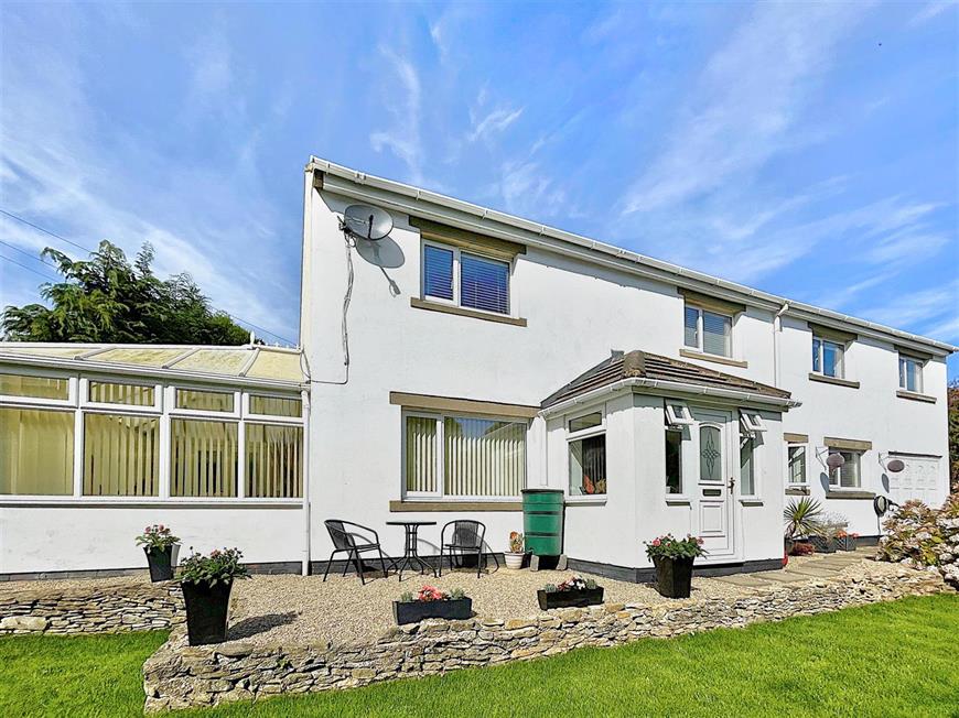 The heart of the home is the large L-shaped kitchen/diner, boasting a comprehensive range of solid wood shaker-style wall units with granite work surfaces, an under-counter sink, integrated dishwasher, fridge freezer, and a range cooker with chimney hood and splashback. The room easily accommodates an 8-seater dining table, with space remaining for a sofa, making it perfect for both dining and entertaining. Adjacent to the kitchen is a useful utility room, complete with base cupboards, a single drainer sink, plumbing for a washing machine and tumble dryer, along with a convenient ground floor W/C.