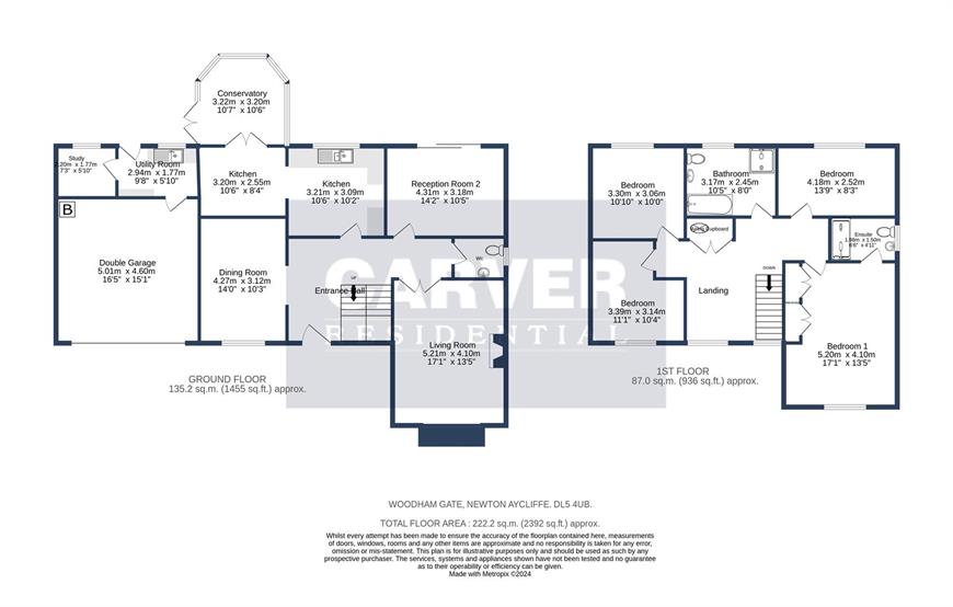 Situated at the head of this desirable cul-de-sac to the outskirts of Woodham, this large 4 bedroom DETACHED executive family home offers extensive living accommodation throughout. An internal viewing will reveal an entrance hallway with feature return staircase to first floor with full height window giving good natural light, living room, a large second reception room with patio doors opening to the rear garden, dining room and kitchen opening to the utility room. In addition there is a study, ground floor WC and conservatory. The first floor features a lovely principal bedroom with en-suite shower room/WC, thee further good size bedrooms and a magnificent completely refurbished family bathroom/WC with separate shower. There is a driveway to the front of the property suitable for parking a number of vehicles with attached double garage. There is a large enclosed garden to the rear enjoying a high degree of privacy