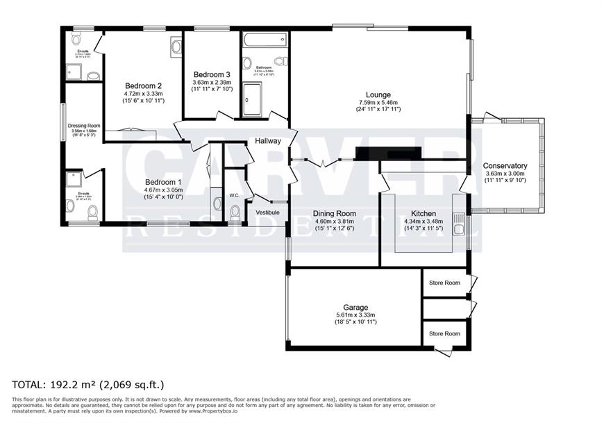 Upon entering, the entrance hallway features a useful WC and built-in cloaks cupboard and leads to a spacious 24ft by 17ft living room, ideal for both relaxation and entertaining. The separate dining room and breakfast kitchen further enhance the living experience, making it perfect for family gatherings or intimate dinners. The bungalow boasts three well-appointed bedrooms, including a principal suite complete with a dressing room and an en-suite shower room, ensuring privacy and convenience. The second bedroom also features its own en-suite shower room/WC, while a family bathroom with a separate corner shower cubicle caters to the needs of the household.