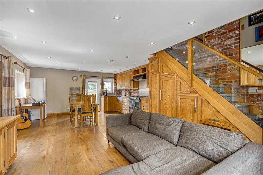 Upon entering, you will discover a deceptively spacious living area that boasts an open-plan arrangement, seamlessly connecting to a bespoke kitchen and living room. This layout is perfect for entertaining or simply enjoying family time. The ground floor also features a handy utility room, adding to the practicality of the space.