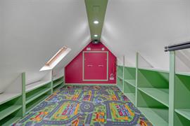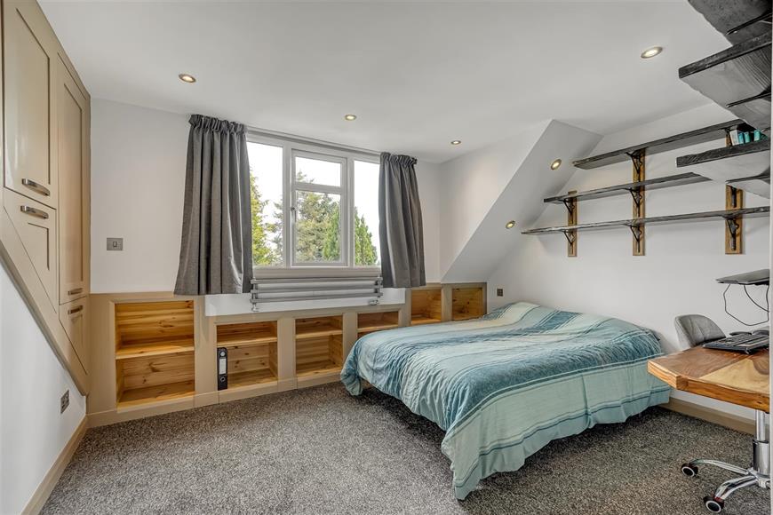 Whilst to the upstairs, you will find a large attic room that offers useful storage, there are two generously sized double bedrooms, each equipped with bespoke storage solutions to maximise space. The bathroom is thoughtfully designed, featuring a walk-in shower for ease and comfort.