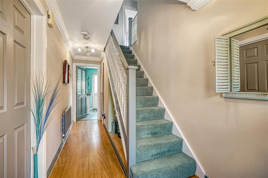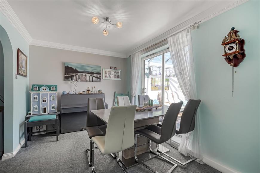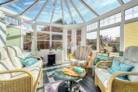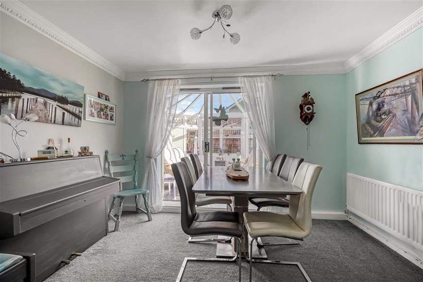 As you enter, you are greeted by a welcoming hallway that leads to two well-appointed reception rooms. The living room features a charming fireplace, creating a warm and inviting atmosphere for relaxation and entertaining, also having a conservatory with views over the rear gardens.The heart of the home is undoubtedly the open-plan refitted kitchen and dining area, which is perfect for family gatherings and culinary adventures. Adjacent to this space is a delightful conservatory, providing a bright and airy spot to enjoy the views of the mature, established gardens.