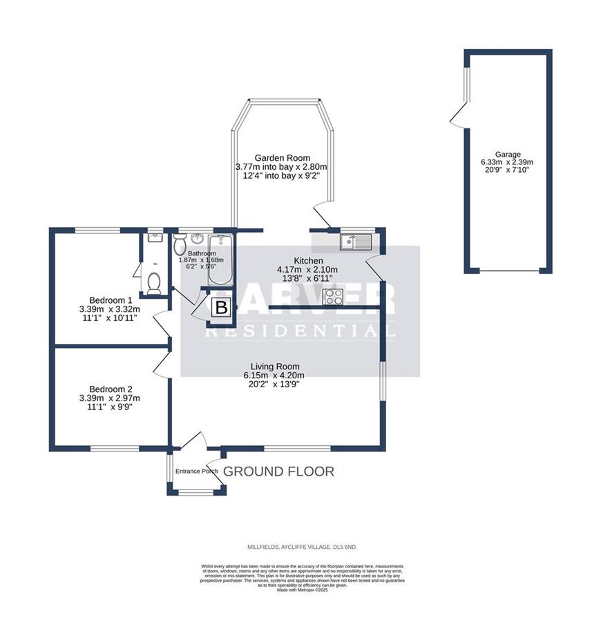 Occupying a pleasant location in this conveniently placed village within a "stones throw" of the A1M this DETACHED bungalow has been significantly improved throughout and is offered for sale with NO ONWARD CHAIN. An internal viewing will reveal an entrance vestibule, well proportioned living room to the front, kitchen and a large uPVC double glazed conservatory overlooking the private rear garden. The principal bedroom features French doors opening to the rear garden and an en-suite WC. There is a second double bedroom to the front with a recently installed bathroom/WC. Externally the driveway extends to the side of the property and in turn leads to the larger than average DETACHED GARAGE. The rear gardens, which enjoy plenty of afternoon sun, have been landscaped with extensive patio area and artificial grass. Equipped with gas central heating to radiators and uPVC double glazing throughout the property lies within a popular village location with central village green, public house, the highly regarded "County" restaurant and regular bus services North and South bound.
