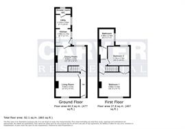 A well presented and extended two bedroomed mid terraced house providing spacious living accommodation situated within walking distance of the High Street and Railway Station. The property benefits from gas fired central heating and Upvc double glazing. The accommodation includes a reception hall, two separate reception rooms, fitted kitchen, utility room and ground floor shower room/wc, To the first floor there are two double bedrooms, the master having a large built in cupboard. The spacious bathroom is fitted with a white suite with roll top bath and mixer shower over. Externally there is an enclosed courtyard and an additional enclosed garden with patio area and shed.