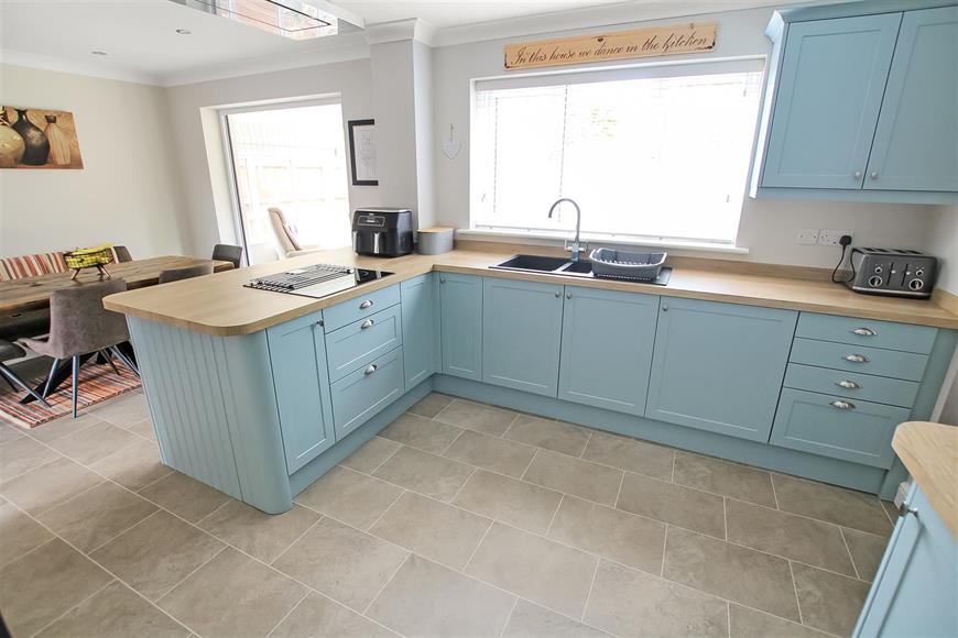 A beautifully presented DETACHED family home with GARDEN ROOM extension, fabulous open plan fitted kitchen/dining room and EXTENSIVE driveway leading to an integral single garage.