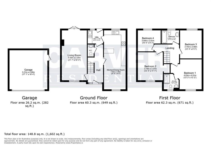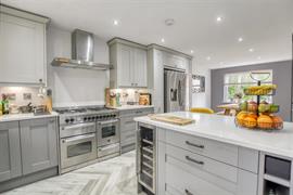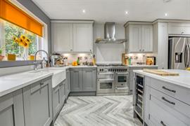 An impressive refurbished four bedroomed detached family house with reconfigured living accommodation creating a modern and open plan feel. The refurbishment also includes modern kitchen, bathroom and ensuite fittings, central heating boiler and radiators, internal doors, log burner, French doors, floor coverings and landscaping to the gardens. The accommodation includes a reception hall, cloakroom/wc, lovely open plan kitchen/dining room with twin Belfast sink, breakfast bar, integrated dishwasher and Quartz worktops. There is also a useful utility room with door to the rear garden. The spacious living room has a log burning stove and French doors that open to the rear garden. From the landing there is a master bedroom with ensuite shower room with double walk in shower, three further good sized bedrooms and a family bathroom fitted with a shaped bath with shower over. Externally there is a front garden, double drive to the side leading to the detached double garage with remote door and a lovely rear garden with patio, lawn and a delightful decked seating area.