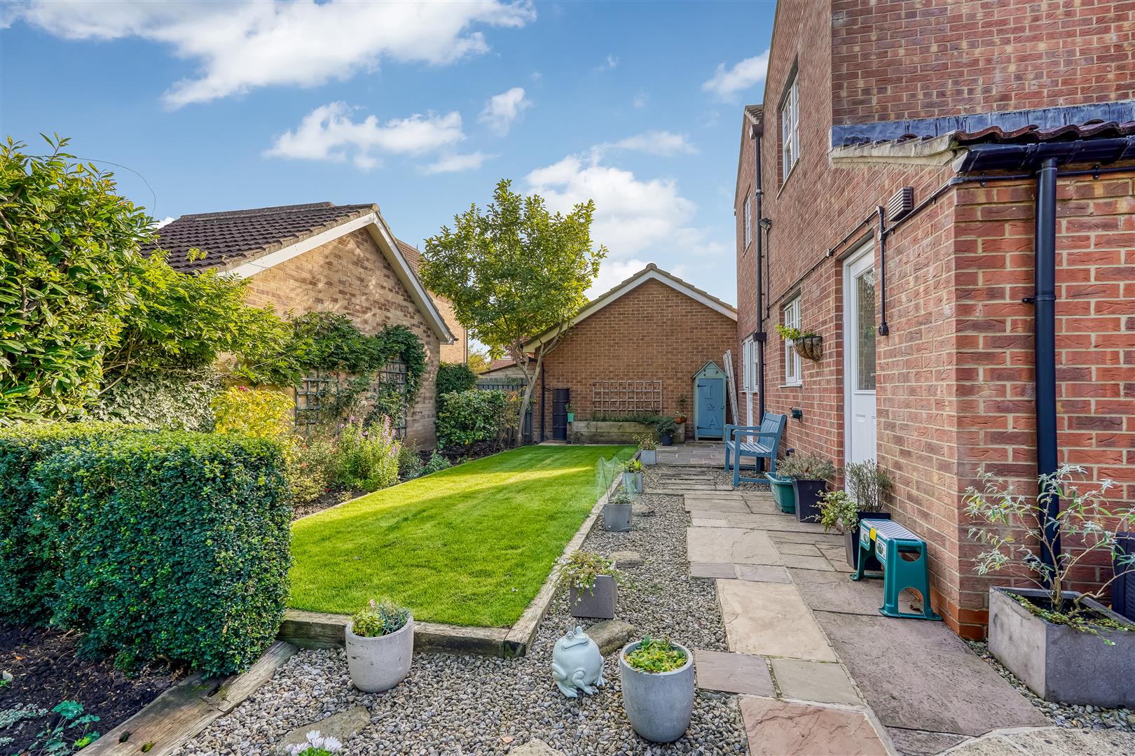 The property features four well-proportioned bedrooms, one family bathroom and one en-suite bathroom, ensuring comfort and privacy for all family members. The corner-sited plot enhances the sense of space and offers a delightful outdoor area for relaxation and play.
