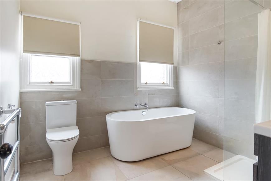 The property features three well-proportioned bedrooms, providing ample space for rest and relaxation. Each room offers a comfortable retreat, ideal for unwinding after a long day. The layout is tradition in design with a stunning bathroom, designed for both functionality and comfort. The layout ensures ease of access for all members of the household.