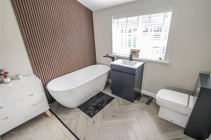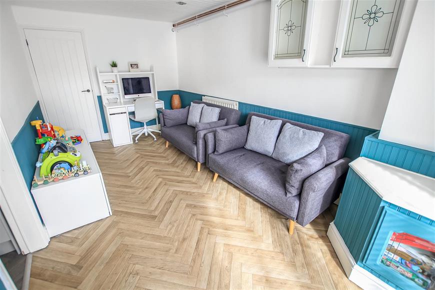 A beautifully presented family home which has been significantly improved throughout. Upon entering, you are greeted by a welcoming vestibule that leads into an "L" shaped living and dining area, enhanced by French doors that open onto the garden, allowing natural light to flood the space. The modern fitted kitchen is equipped with a range of integrated appliances, making it a joy for any home cook. Additionally, the part-converted garage, currently serving as a sitting room, offers versatility and could easily be transformed into a study or playroom to suit your needs. The first floor features three well-proportioned bedrooms, including a principal dual-aspect bedroom that is a true sanctuary, complete with a luxurious freestanding bathtub, a pedestal wash hand basin, and a low-level WC. The two additional bedrooms are also generously sized, providing ample space for family or guests. A shower room/WC completes the upper level. Externally, the property is equally impressive, with a block-paved driveway to the front and attractive enclosed gardens at the rear provide a peaceful retreat, ideal for outdoor gatherings or quiet evenings. Furthermore, a single garage located in a block at the rear offers additional storage and convenience, with pedestrian access from the garden. This beautifully presented home has been significantly improved throughout, making it a perfect choice for those seeking a move-in ready property in a popular location close to reputable local schooling.