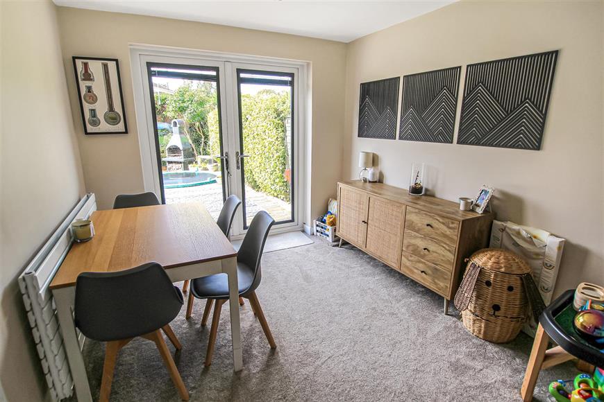 A beautifully presented 3 bedroom detached family home ideally situated in this convenient location close to local schooling. Upon entering the entrance vestibule, you are greeted by a spacious dual aspect living/dining room, which is bathed in natural light and features elegant French doors that open onto the attractive enclosed gardens at the rear. This seamless connection between indoor and outdoor spaces makes it perfect for entertaining or simply enjoying a quiet afternoon in the sun. The modern fitted kitchen is well-equipped, providing a functional space for culinary enthusiasts. The ground floor also boasts a convenient WC and a converted garage, which offers versatile additional space that can be tailored to your needs, whether as a playroom, home office, or extra storage. Upstairs, the property features three well-proportioned bedrooms, including a principal bedroom with built-in wardrobes, ensuring ample storage. The family bathroom/WC is fitted with a contemporary white suite, providing a stylish and practical space for daily routines. The property is set within a popular development, close to reputable schooling, making it an excellent choice for families. The driveway offers off-street parking, adding to the convenience of this lovely home. With its attractive gardens, spacious interiors, and prime location, this property is a wonderful opportunity to purchase a lovely family home in a popular location.