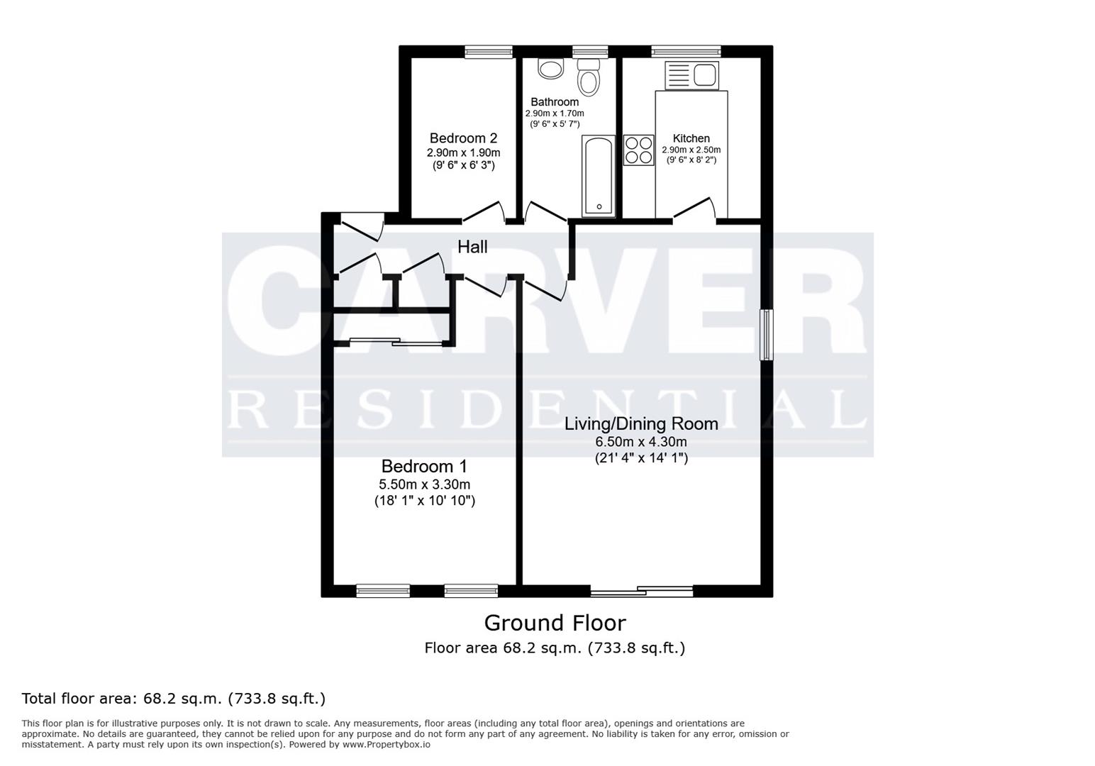 Having the benefit of intercom entry system, the apartment features a welcoming hallway, with useful storage cupboards, a large living/dining room is a standout feature, boasting patio doors that invite natural light and provide easy access to the outdoor space. two well-proportioned bedrooms, each featuring built-in wardrobes, ensuring ample storage and a clutter-free environment. The modern shower room and WC add to the convenience of this lovely residence.