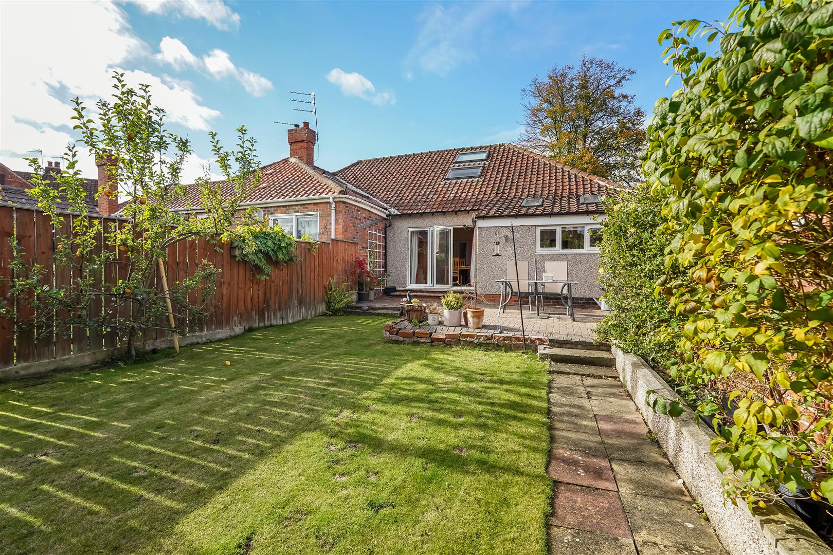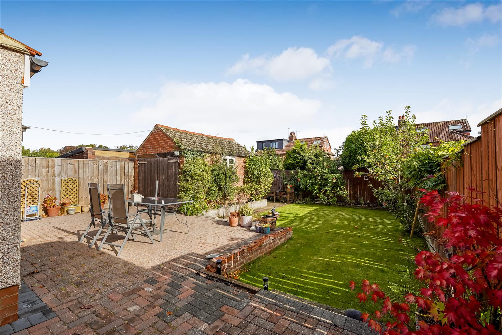 Externally, to the front there is parking for two vehicles, with gated access leading to the rear garden. To the rear there is a former garage offering storage, and a mature, established garden with paved and lawned area.
