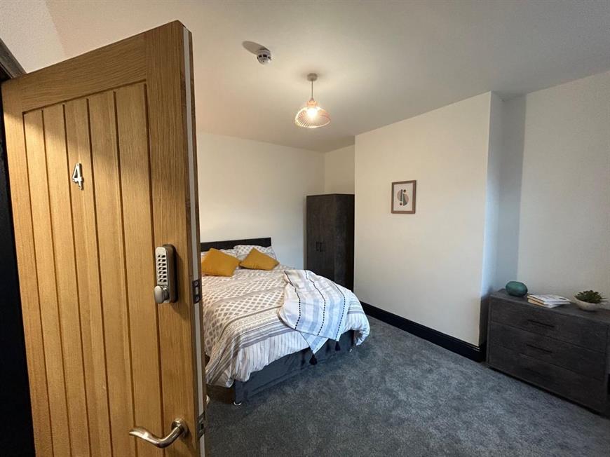 The shared open plan living, dining and kitchen with breakfast bar is the perfect space for those who love to cook or bake with great worktop space, two ovens, five-point hob and two fridge freezers plus plenty of storage space. The seating and dining area, complete with large wall mounted smart TV is the perfect place to relax and get to know your new house mates. There is the benefit of a separate utility/laundry room to the rear keeping the noise and hassle of washing out of the way.