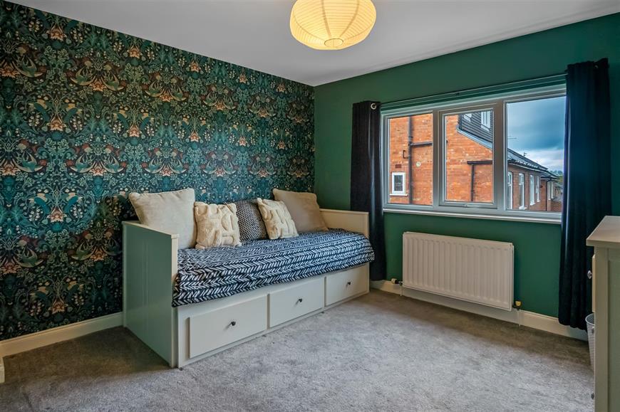 As you ascend to the first floor, you will find the master bedroom, which is enhanced by bespoke fitted wardrobes, providing ample storage and a touch of elegance. The family bathroom is thoughtfully designed, featuring a separate shower for added convenience.
