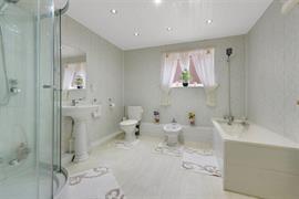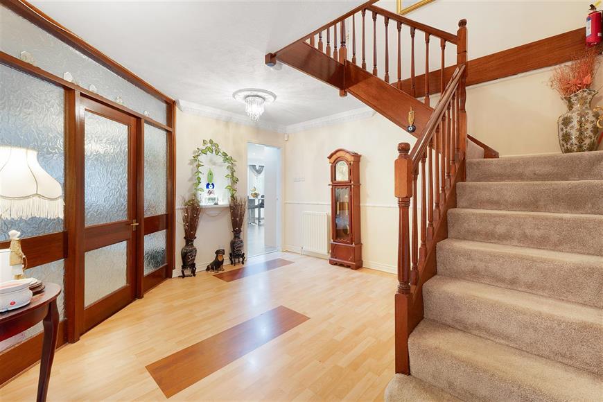 As you ascend to the first floor, you will find a galleried landing leading to the master bedroom, which includes an en-suite bathroom. The remaining bedrooms are well-proportioned, providing flexibility for family living or home office needs.