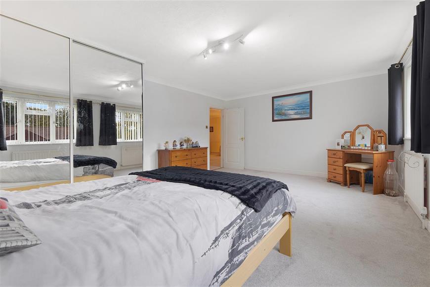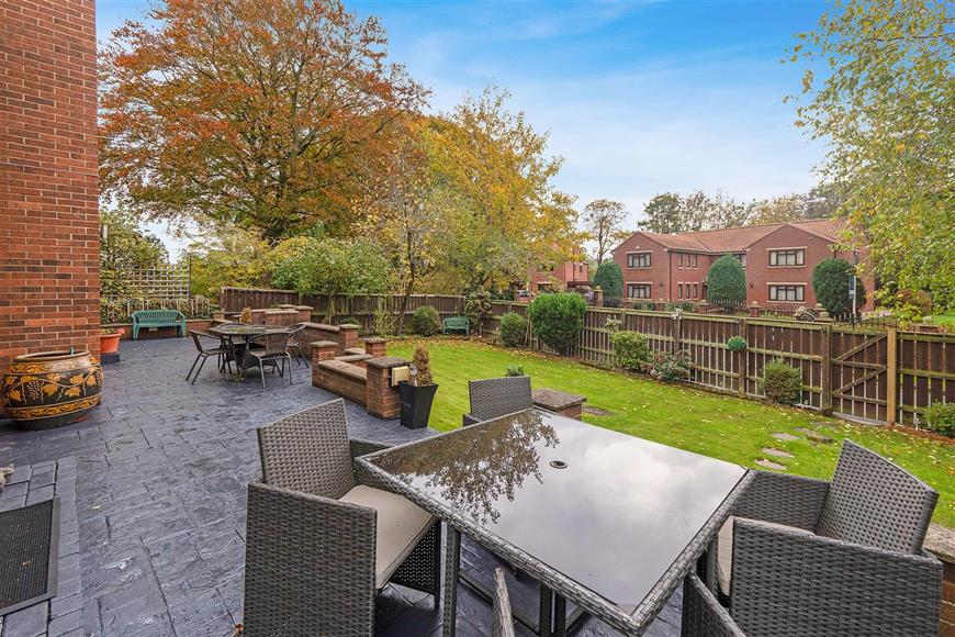 The exterior of the property is equally impressive, featuring a mature and established south-facing rear garden, complete with a well-maintained lawn and attractive borders, with sun terrace ideal for outdoor enjoyment. The double-width driveway leads to a garage equipped with an electric door, adding to the convenience of this exceptional home.