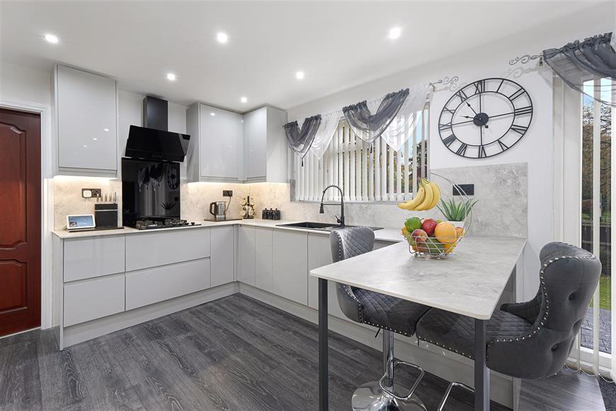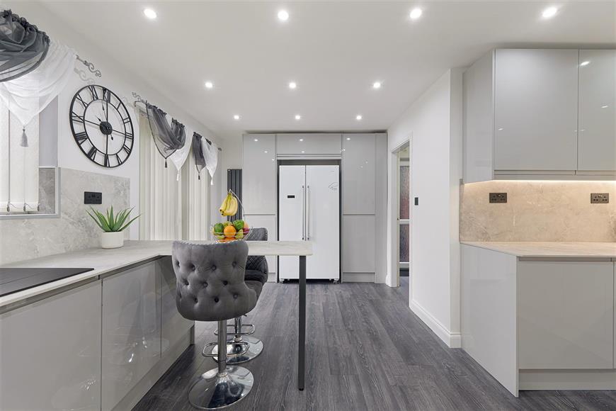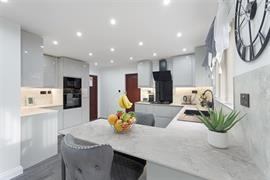 Upon entering, you are greeted by a large and welcoming hallway that sets the tone for the rest of the property. The ground floor features three spacious reception rooms, perfect for both relaxation and entertaining. The refitted kitchen and breakfast room is a highlight, offering a contemporary space for culinary pursuits, complemented by a handy utility room and a convenient ground floor cloakroom with WC.