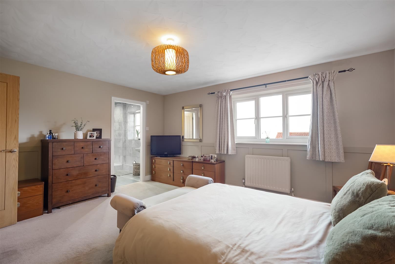 The two well-appointed bathrooms ensure convenience for all residents, a family bathroom and ensuite to the master bedroom with an all important downstairs W/C making morning routines a breeze. The property is designed to cater to modern living, with a focus on both functionality and style, yet retaining a country feel.