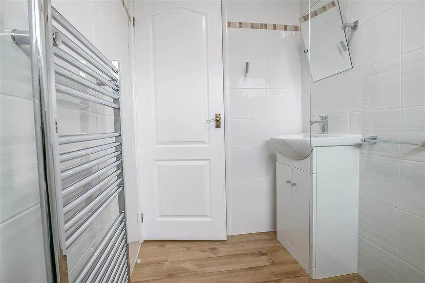 The first floor boasts two well-proportioned double bedrooms, each thoughtfully designed with fitted sliding wardrobes in the master bedroom and additional fitted drawers and wardrobe in the second bedroom. The modern shower room, conveniently located between the two bedrooms, features a WC, wash hand basin, and a shower cubicle, ensuring practicality for daily living.
