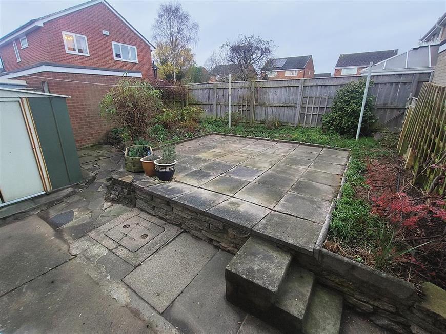 As you enter the home, you are welcomed by a spacious porchway that leads into a generous lounge, featuring an open-plan staircase that adds a touch of elegance. An internal door guides you into the modern kitchen, which is equipped with stylish wall and floor units, a newly fitted cooker, and ample space for white goods. A UPVC door opens out to a delightful patio garden, perfect for outdoor entertaining or simply enjoying the fresh air, complete with a handy storage shed.