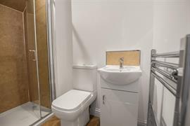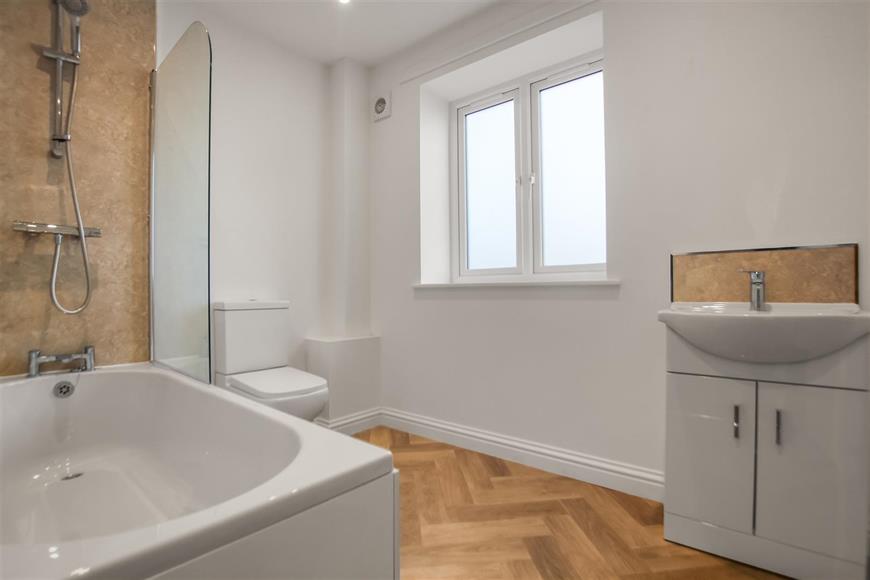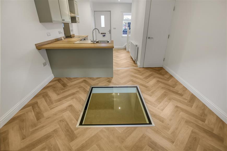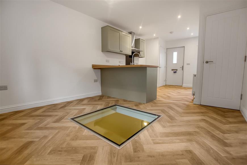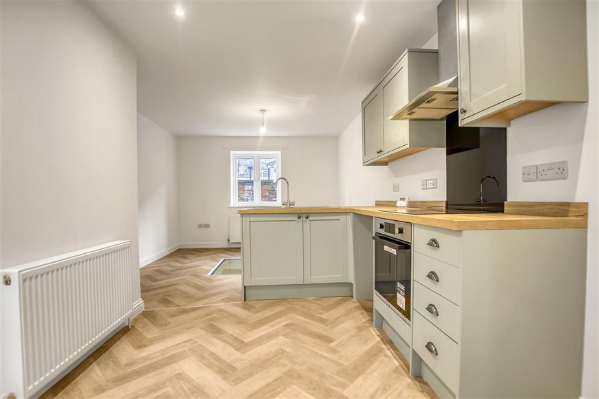 A brand new two bedroomed terraced town house forming part of the conversion of the former Thorntons Prints building in to four dwellings. Located in the centre of Thirsk, the property provides modern and well designed living space benefitting from gas fired central heating and Upvc double glazing. The accommodation includes an open plan ground floor kitchen/dining room with modern kitchen including integrated oven and hob. The dining area has a floor window allowing natural light in to the basement living room. To the first floor there is a double bedroom and family bathroom fitted with a modern white suite with shower over the bath. To the second floor there is a master bedroom with velux roof windows and an ensuite shower room.