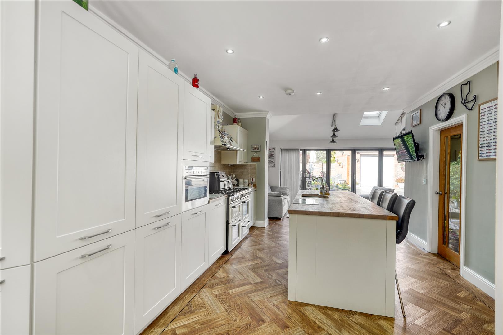 As you step through the entrance, you are greeted by a spacious reception hallway that sets a sophisticated tone for the rest of the home. The property boasts two elegant reception rooms, providing ample space for both relaxation and entertaining. The heart of the home is undoubtedly the open-plan bespoke kitchen, complete with a central island, making it an ideal space for family gatherings and culinary adventures.