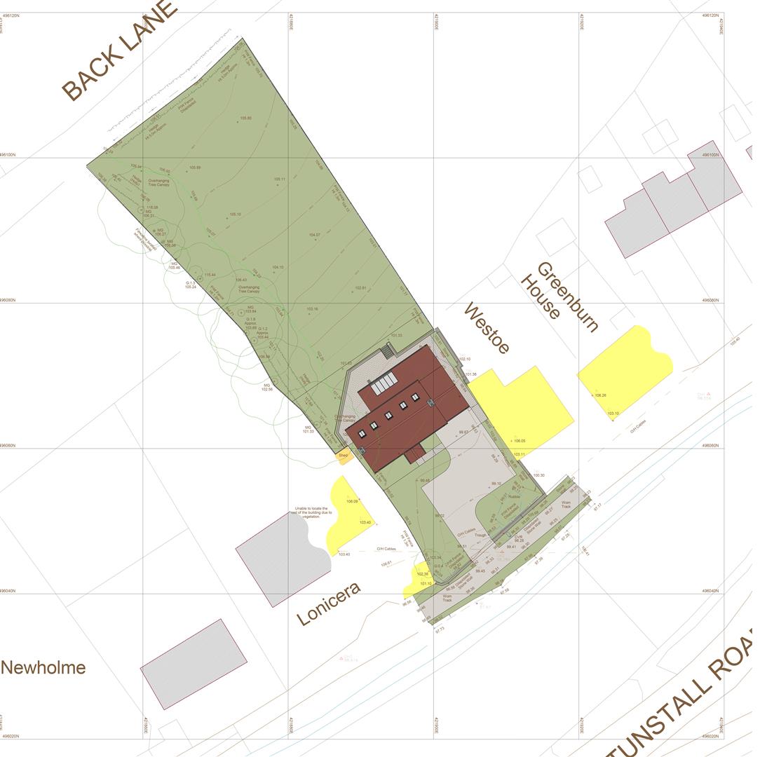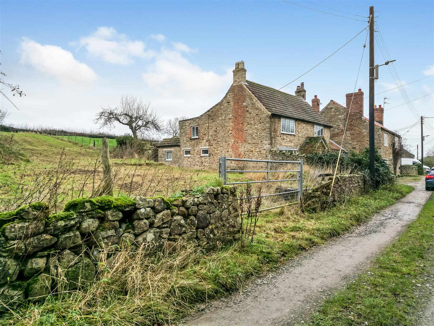 The access to the front is via an unadopted lane bounded by Tunstall Beck to the South. There are no services connected but are located nearby.
