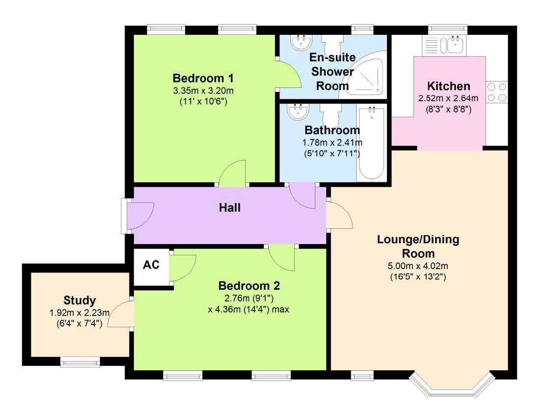 Internally you will find a spacious, open plan living space which has a generous lounge with Bay window and a well equipped kitchen with a good range of shaker style wall and base units, the internal hallway provides access to the “family” bathroom with low level w/c, pedestal wash basin and full size bath, the master bedroom which is a large double room with ensuite shower room, and a second large double bedroom which has the added benefit of an adjoining room which could be used as an office, dressing room or nursery is located across the hallway providing a good amount of separation.