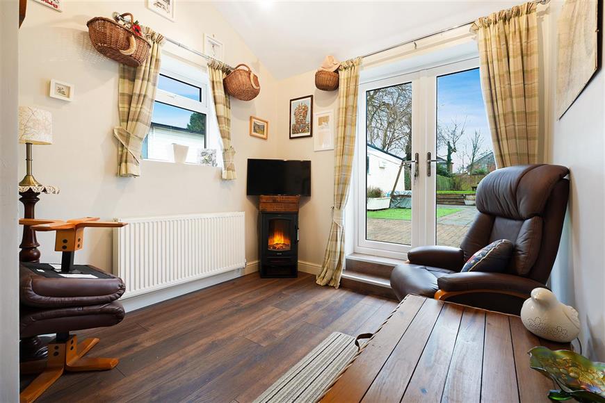 This most striking home briefly comprises on the ground floor; entrance lobby, large lounge/sitting room with beautiful wood flooring and feature fireplace, kitchen fitted with a most attractive range of floor and wall units with integrated appliances, study/dining room with a vaulted ceiling and French Doors leading to the rear, and there is a separate WC. To the first floor there are three double bedrooms, the master with a fireplace, a bathroom with a separate large shower cubicle, and a separate WC. Externally the plot is fantastic with lovely gardens, West Facing to the rear with a very pleasant patio area. There is a large garage and a driveway with parking for several vehicles.