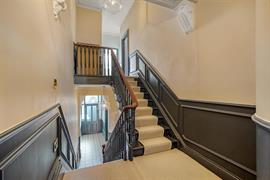 This stunning Victorian Town House, located on the highly desirable Langholm Crescent in Darlington’s west end, presents an exceptional opportunity for discerning buyers. Immaculately renovated throughout, this elegant period home retains a wealth of original features while offering modern comforts and stylish living spaces. The property comprises an inviting entrance vestibule leading into a beautifully presented hallway with underfloor heating. The ground floor features a spacious living room with a sash bay window, plantation shutters, and a polished slate fireplace, as well as a charming dining room with built-in storage and a feature fireplace. The impressive kitchen/breakfast room boasts high-end appliances, quartz countertops, a double Belfast sink, and bi-fold doors opening onto the rear garden. A cloakroom and a useful basement cellar complete the lower levels. Upstairs, four well-proportioned bedrooms offer elegant living space, each showcasing period details such as wood flooring, sash windows with shutters, and period fireplaces. The modern family bathroom includes a panelled bath, shower cubicle, wash hand basin, and WC, all complemented by a contemporary design. Externally, the property benefits from a front lawn and an enclosed walled rear garden with wall lighting, an outhouse, a coal house, and a detached garage featuring an electric door, water points, and integrated appliances. Situated in one of Darlington’s most sought-after locations, the home is within walking distance of the town centre, offering an array of shops, restaurants, and leisure facilities. It is also ideally positioned for access to highly regarded schools and excellent transport links, including the A1M, A66, and Darlington’s East Coast Main Line railway. Offering ready-to-move-into accommodation with timeless charm and character, internal viewing is highly recommended to fully appreciate this remarkable residence.