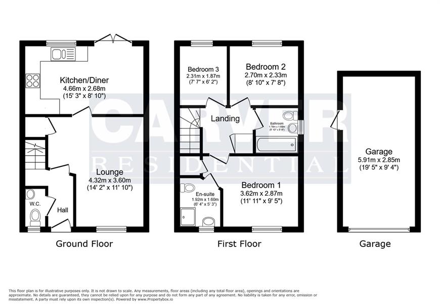 A beautifully presented modern three bedroomed semi detached house situated in a popular residential location. The property benefits from gas fired central heating and Upvc double glazing. The accommodation includes an entrance hall, cloakroom/wc, spacious living room, kitchen/dining room with integrated oven, hob and French doors to the rear patio and garden. The master bedroom has fitted wardrobes and an ensuite shower room/wc. There are two further bedrooms and a family bathroom with shower over the bath. There is a front garden, driveway to the side providing off street parking and access to the EV point and garage with roller door and pedestrian door. The attractive rear garden is a good size with patio, lawn and side gate.