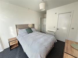 The bedroom is a serene retreat, complete with an ensuite bathroom for added privacy and convenience. The flat is thoughtfully furnished with a double bed, bedside tables, a wardrobe, a set of drawers, a comfortable sofa, and a dining table, ensuring you have everything you need to settle in effortlessly.