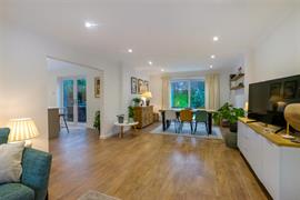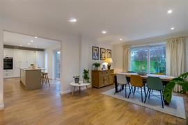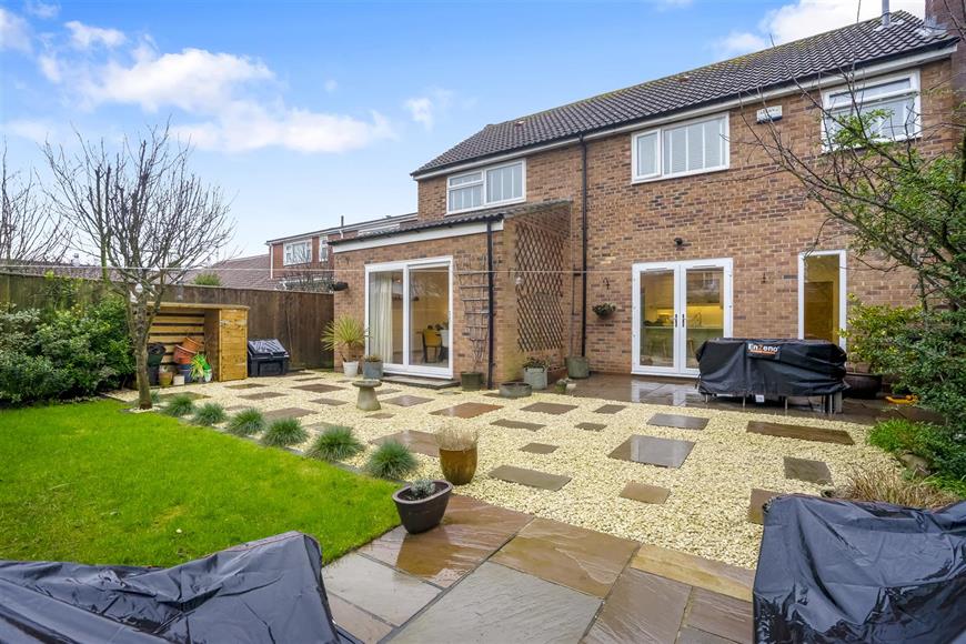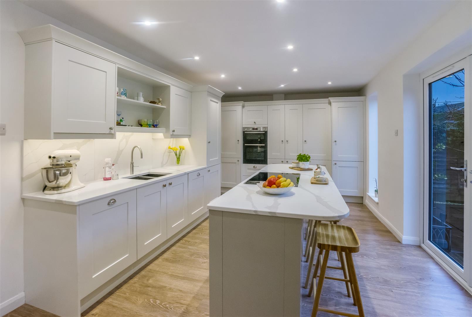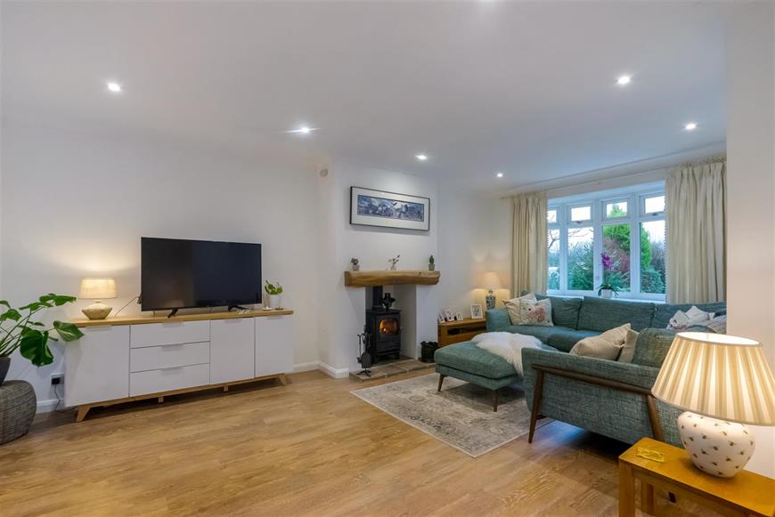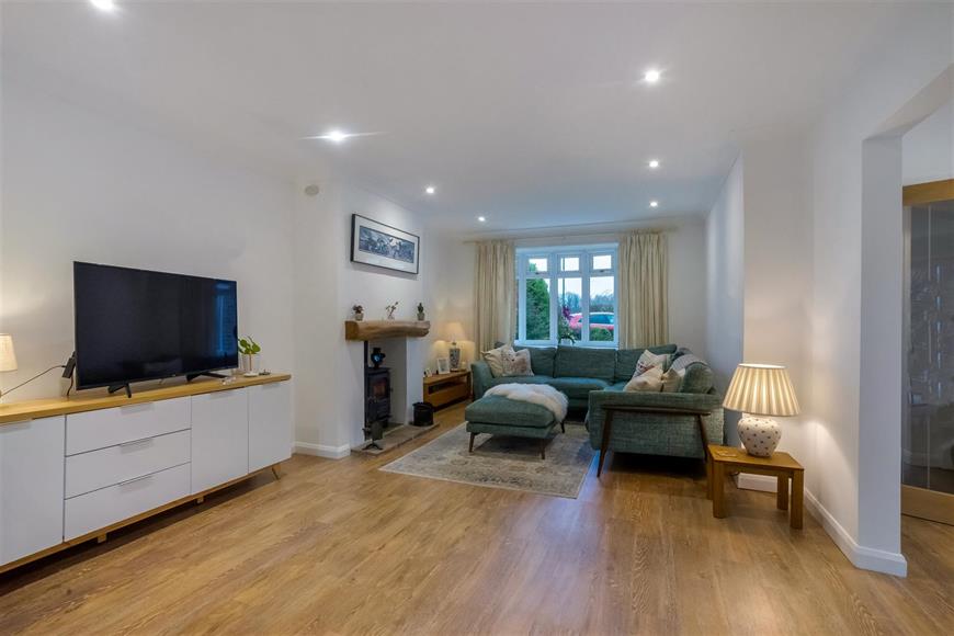 Upon entering, you are greeted by a welcoming hall that sets the tone for a warm and inviting home. The heart of the home is undoubtedly the stunning bespoke open-plan kitchen/breakfast room, which features integrated appliances and a large central island, perfect for both cooking and entertaining, also having the benefit of patio doors bringing the outside in. The living room, complete with a cosy log burner, provides a comfortable space to unwind, while the separate dining room offers an elegant setting for family meals and gatherings.