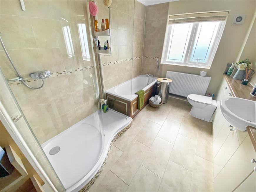 The principal bedroom overlooks the rear garden and is equipped with built-in wardrobes and an en-suite shower room/WC. The family bathroom features a separate corner shower cubicle, adding to the practicality of this delightful home.
