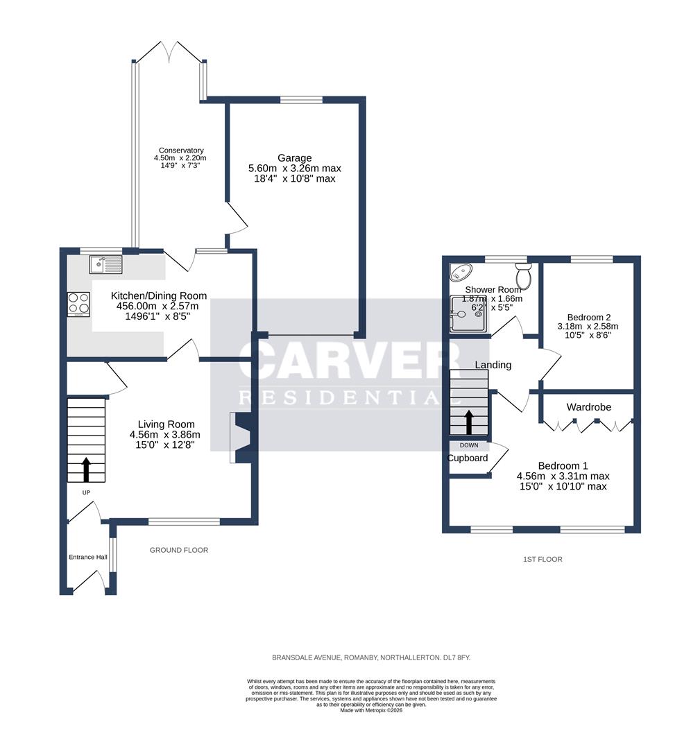A beautifully presented two double bedroomed semi detached home with landscaped front and rear gardens situated in a popular location within easy reach of the High Street and rail way station. The property benefits from gas fired central heating and Upvc double glazing. The accommodation includes an entrance vestibule, spacious living room, kitchen/dining room with fitted kitchen including integrated hob, oven, fridge and granite work tops. The conservatory over looks and open to the rear garden and also provides access to the garage. From the landing there is access via a ladder to the part boarded loft. The main bedroom has fitted wardrobes and dressing table. Bedroom two is also a double room. The shower room is tiled and fitted with a corner shower cubical. Externally there are low maintenance front and rear gardens, driveway providing off street parking and a garage with remote roller door and utility area.