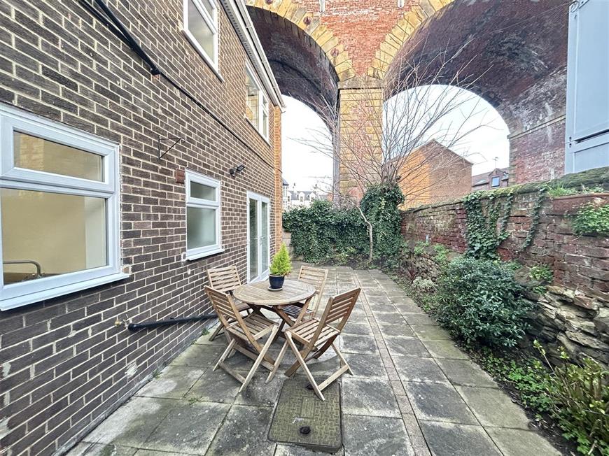 Situated in the popular market town of Yarm with parking space, garage and exclusive use of a well maintained outside patio area, a beautifully refurbished 2 bedroomed ground floor apartment with its own private entrance is offered to rent, within a small block of 4 apartments on a quiet development, a stones throw from the trendy restaurants and bars.
