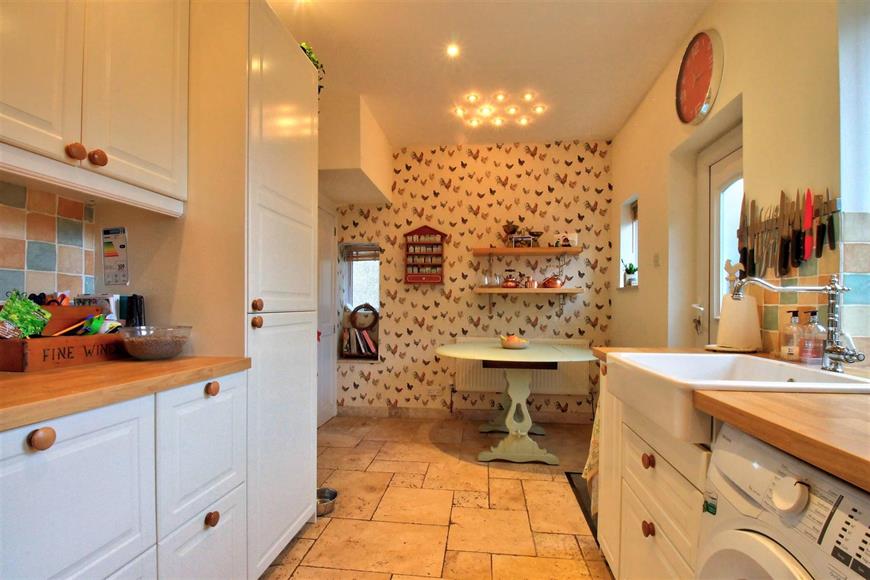 You enter the property into a small porch area with stairs to first floor and door through to the generous yet cozy living room with feature fireplace, solid wood flooring with hatch to the small cellar area, door to the kitchen dining room which is fitted with a good range of white “country style” units and wooden worksurfaces, integrated appliances, useful, under stairs pantry cupboard and a lovely view to the rear garden and Richmond Castle beyond.