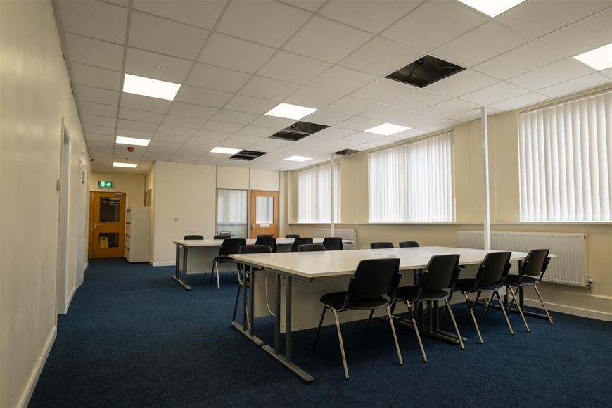 Versatile Business Centre providing refurbished accommodation that may suit a variety of business uses. Enterprise House fronts Valley Street in the town centre fringe and benefits from 125 car parking spaces secured by electrically operated security gates. Suites incorporate their own heating/ cooling systems, kitchen and wcs.