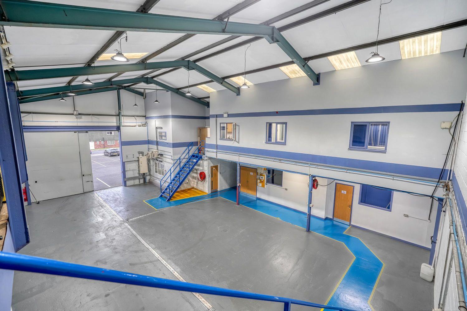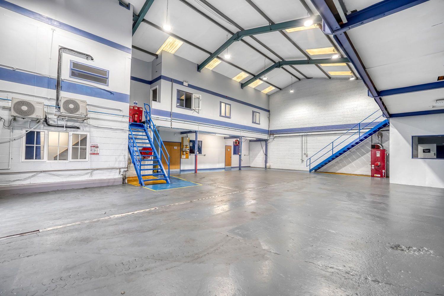 The premises comprises an open plan warehouse with offices and two mezzanine levels – extending to approximately 7,691sq.ft.